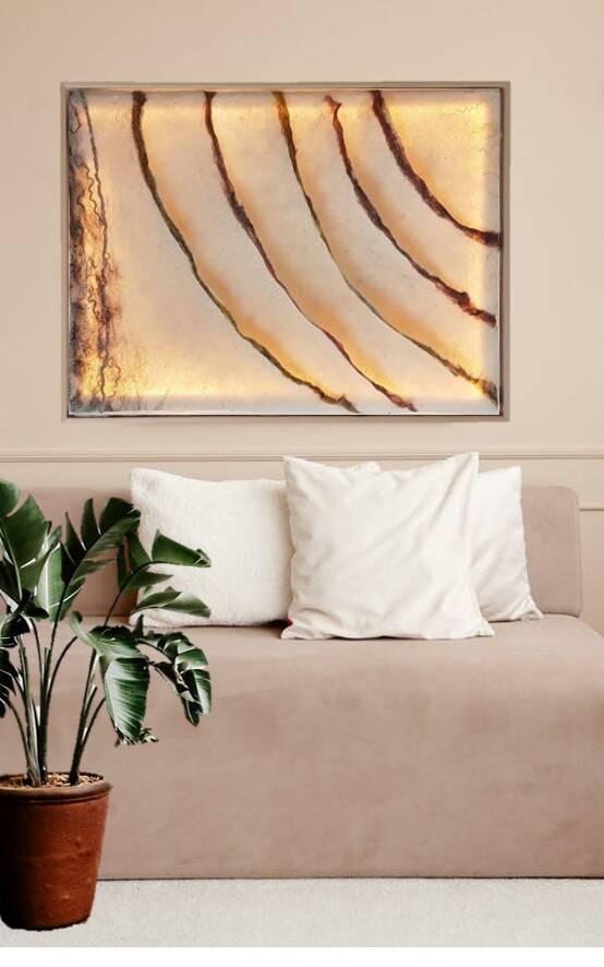 Momenteel werk ik aan een nieuwe serie wandpanelen, zowel mét als zonder licht. Nog steeds geïnspireerd op het waddengebied.